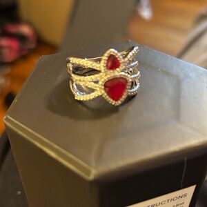 Elegant silver ring featuring a striking red heart design. Perfect for adding a touch of glamour to any outfit. Cannot promise original packaging