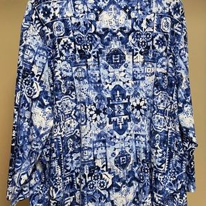 I have a beautiful blue and white blouse. This blouse is NWOT.