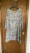 Abstract print painterly , mostly a neutral - grey gray , a pink also in the print , dull silver metallic accent at cutout cut out at neckline , casual , office , party , boho , bohemian , comfy