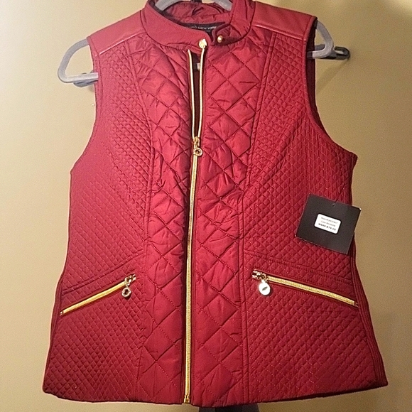 ruby red Marc new york jacket with gold accents
