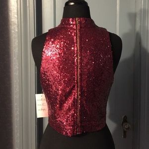 Beautiful ruby red (think Dorothy's Wizard of Oz shoes)  Fits more snug to body than shown. (Large size top Small size mannequin)