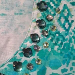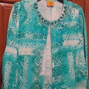 Teal, blue, green jacket with jeweled neckline.