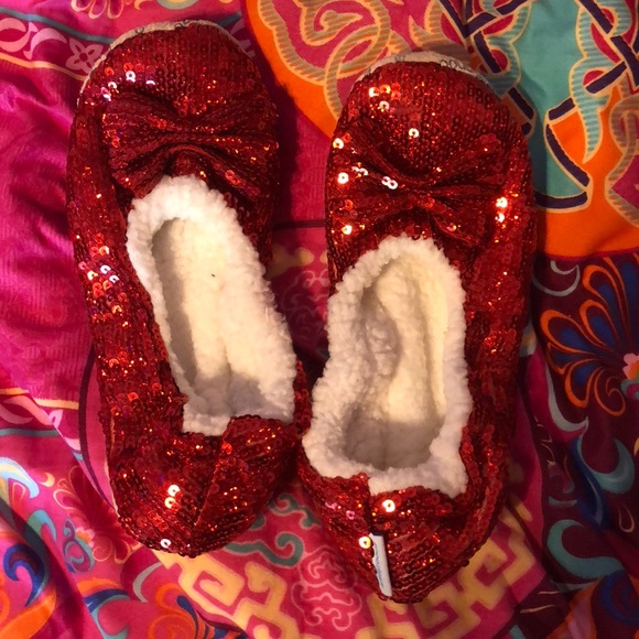 Glittery red fuzzy slippers with a small bow perfect condition almost never worn