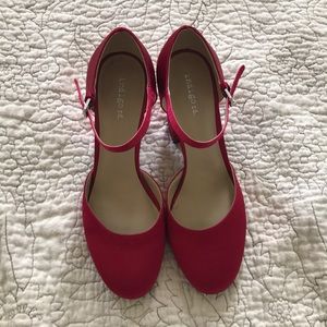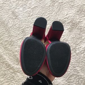 Gorgeous Red Satin Dโorsay pumps. I wore these once indoors for a work function, they are sturdy and comfortable! Would be a great addition to a Dorothy costume, a bridesmaid ensemble, or wedding shoe for you red-shoe brides!