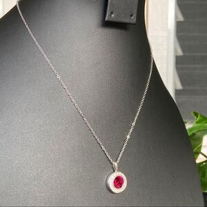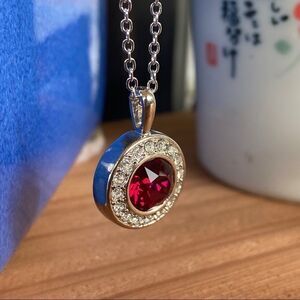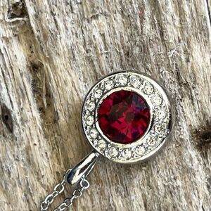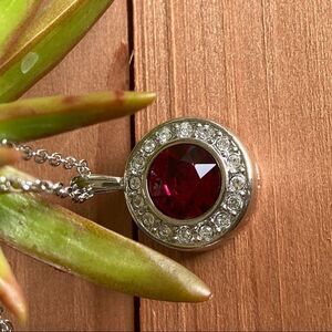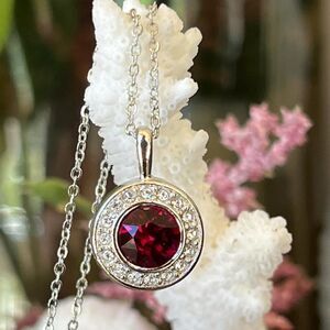 Ruby /Red Birthstone Halo Necklace Made with Swarovski Crystal Elements