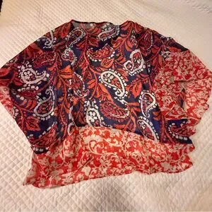 No flaws, full tank top underneath. Cute! Stylish top with abstract pattern. Features red, blue, and white hues. Perfect for any occasion. Bundle any two items in my closet and I will give you free shipping!