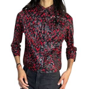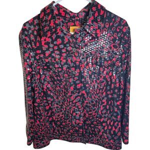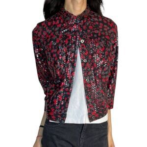 Ruby Rd Spring Punk 90's Vintage Red Black Boho Button Up Shiny Jacket Size Med