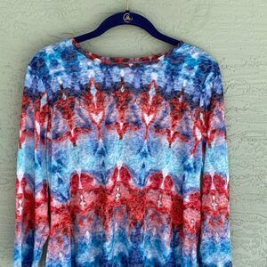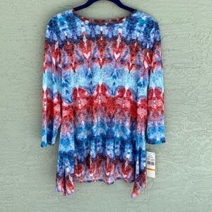 Ruby Rd. Sz S Watercolor 3/4 Sleeve Angle Hem Top Medium Blue multi NWT