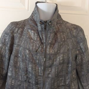 Ruby Rd. Gray fully lined 3/4 sleeve zip-front jacket with pockets, and drawstring and toggle neckline. Lining a small run near tag, please refer to picture 12.