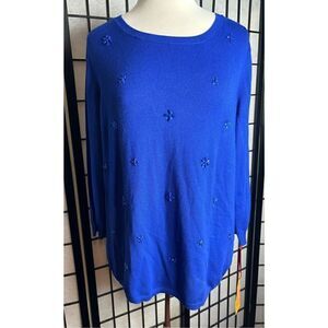 Ruby Red Cobalt Blue Sequin Adorned Sweater