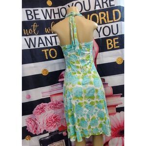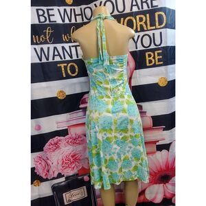 Cotton halter neckline floral summer dress. Mid length