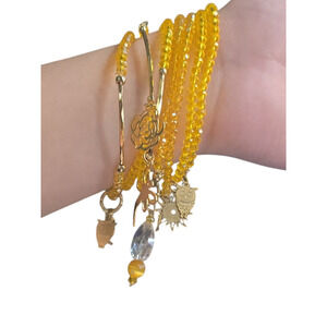 Rubylishious Handmade yellow glass bead bracelet with gold charms Set of 7 bra