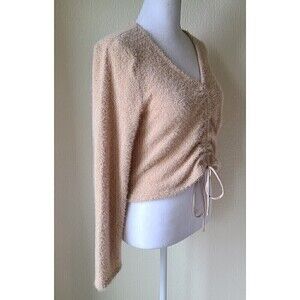 Ruched Altar'd State Sweater Large Cropped NEW Fitted V Neck Long Sleeve Cozy