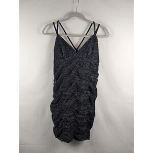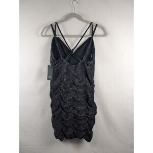 Ruched Bodycon Dress Sleeveless Mini Wild Fable Black XS Plunge Shimmer Fitted