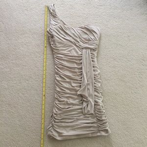 Champagne colored ruched dress with shimmery gold fabric throughout. Never worn.