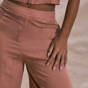 Ruched Detail Wide Leg Linen Look Cute Trousers For Spring Summer