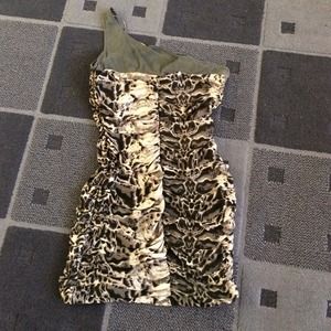 one shoulder gray mesh and animal print ruched party dress..worn once.no damage
