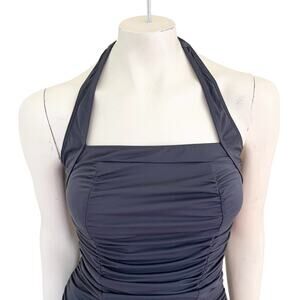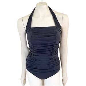 Ruched Front One Piece Halter Swimsuit Bathing Suit in Dark Gray SZ 12