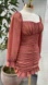 Ruched Long-Sleeve Mini Dress – Square Neck, Sheer Sleeves & Ruffle Hem
