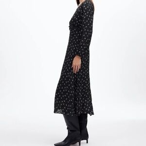 V-neckline, long sleeves and gentle ruching at the front. Fitted at the top with a romantic silhouette, it's an easy choice for a polished look.