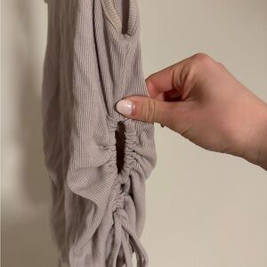 - little peakaboo holes on the side, adjusting the length of the top/ruching with ties
