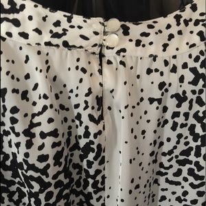 Flirty black and white animal print pattern silky and well lined. Fun to dress up with heels or down with strappy sandals. Elastic stitched 2 inch waistband to expand or contract with your waist, and precious pearly back closure buttons complete the posh look. I wore twice before menopause set in hard! :-) Comfy and so cute. Win. Win. Bundle with one other item for the 15% closet discount.
