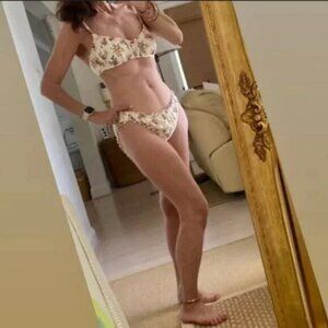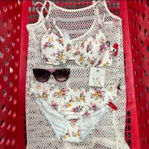 This Ruched Underwire Bikini Top from Shade & Shore™ designed to offer light lift and structure features a ditsy floral print on a white backdrop for extra charm. The stretchy fabric provides comfortable wear, and the removable cups offer customizable coverage. Adjustable shoulder straps and a back hook closure make it easy to find just the right fit.