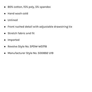 Super cute black ruched dress. Can be dressed up or down. And front length can be adjusted with the tie. Worn only once