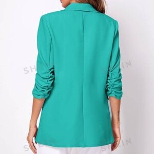 Ruched sleeve teal blazer