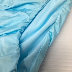 Light blue bikini bottoms detailed with ruched perimeters. Very simple, but cute!