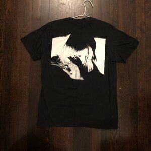 Rucking Fotten Black T-shirt with white and purple graphic on front and white graphic on back. Men's medium, 100% cotton.