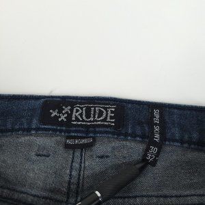 Rude Jeans Mens 30 x 32 Super Skinny Dark Washed Blue Stretch Denim