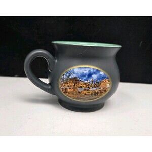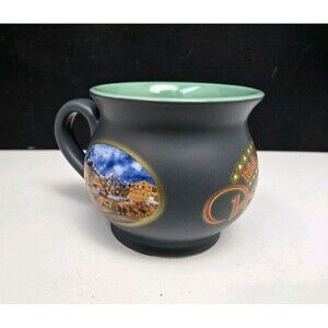 * It is a gray porcelain mug with a green interior.
