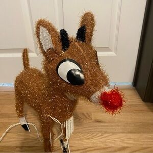 Rudolph 32” Light Up Tinsel Figure Decoration Christmas Reindeer Red Nose