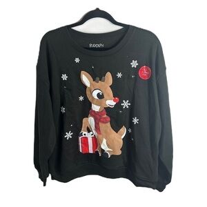Rudolph Light Up Sweatshirt NWT XXL Red Nosed Reindeer Black Red Women’s