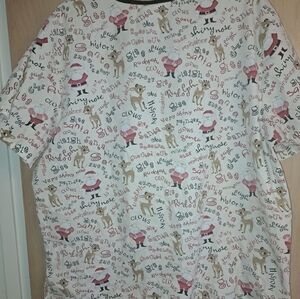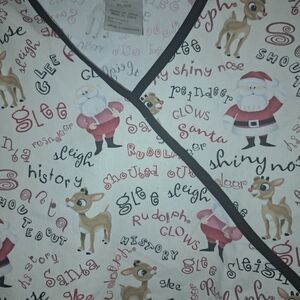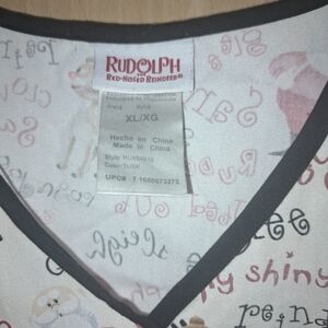 Rudolph The Red-Nosed Reindeer Womens Scrub Top White Pink XL Christmas Holiday