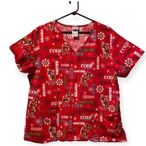 Rudolph Top The Red Nosed Reindeer Scrub Women’s Size Large Red Cotton
