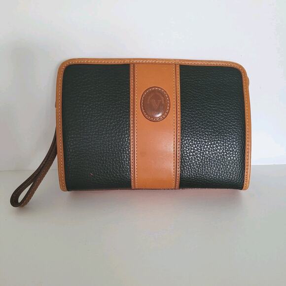 Rudolph Valentino Bag Clutch Wristlet Vintage Zip Italian Black Brown Leather