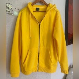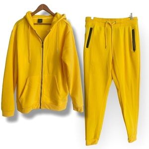 Brighten your wardrobe with this NEW vibrant yellow loose fit tracksuit. Perfect for casual outings or lounging at home. It’s NWOT, fleece lined, jogger style bottoms, full front black zip closure, matching zipper pockets on the bottoms