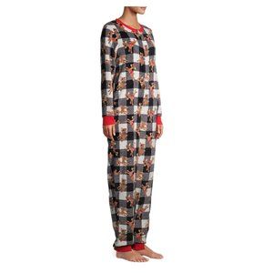 Rudolph Women's Plush Black/White Reindeer Drop Seat Holiday Union Suit Onesie
