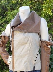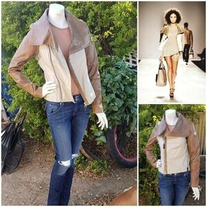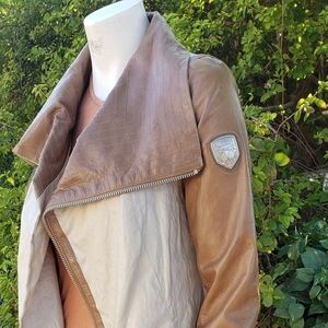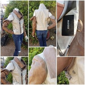 RUDSAK TOP OFF YOUR LOOK WITH THIS FABULOUS BIKER moto INSPIRED BROWN LEATHER Combo MIA JACKET. FOUR ZIPPER POCKETS WITH DETAILS, SILVER ...zippered sleeves off