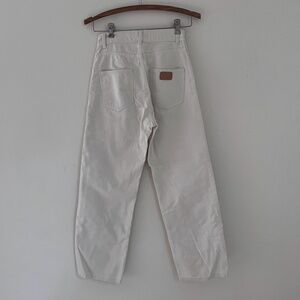 Rudy jude utilities, purchased secondhand, but never worn by me as I found them to be too small (measurements included above). These have a few little scratches/dots on the fabric. They aren’t noticeable/arrived that way, and may come out with washing (I haven’t washed them myself). Tried to take some photos of them. Really lovely jeans, hopefully someone can enjoy them (and I can find a larger pair lol)!
