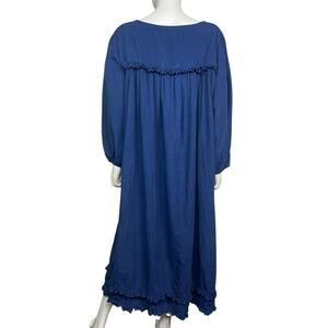 Rudy Jude Women's M Navy The Early Riser Cottagecore Prairie Boho Ruffles Maxi Dress EUC