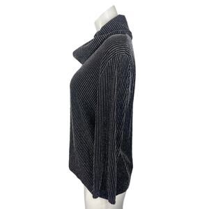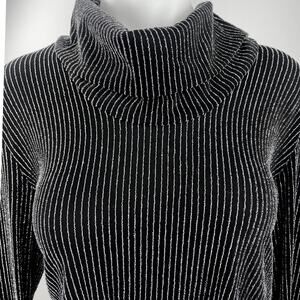 Rudy Rd Black Metallic Pinstripe Turtleneck Long Sleeve Pullover Sweater Top M