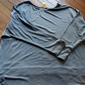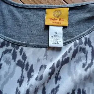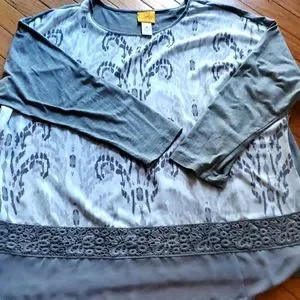 Gray and white top.