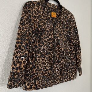 Rudy Rd Women's Shiny Textured Cheetah Print Zip Front Crop Bomber Jacke…