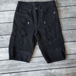 Rue 21 Black Distressed Bermuda Jean Shorts Sz 26