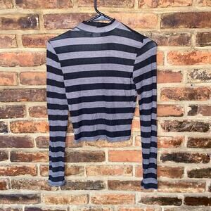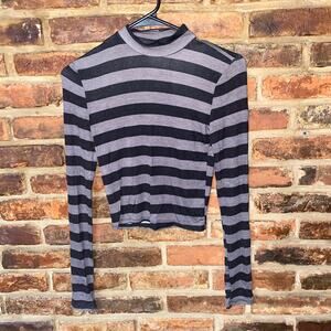 Rue 21 Black Gray Striped Long Sleeve Mock Neck Top Women's Size Small