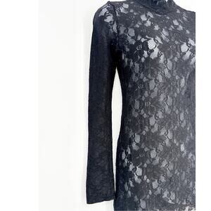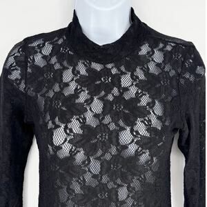 Rue 21 Black Lace Floral Mesh Stretch Faux Collar Mini Dress Size M