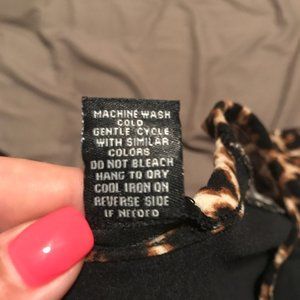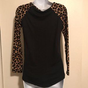 Ladies XS. Raglan type t-shirt with leopard print sleeves. Soft poly/spandex material. Perfect for Fall. Dressy enough for the office! GUC. No rips, stains or defects known.